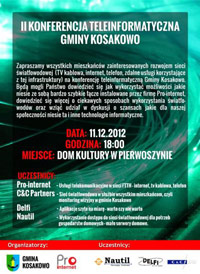 W związku z kontynuacją prac związanych z budową na terenie gminy Kosakowo szerokopasmowej sieci światłowodowej, Pro-internet Sp. z o.o. ogłasza konkursy ofert na dostawę: